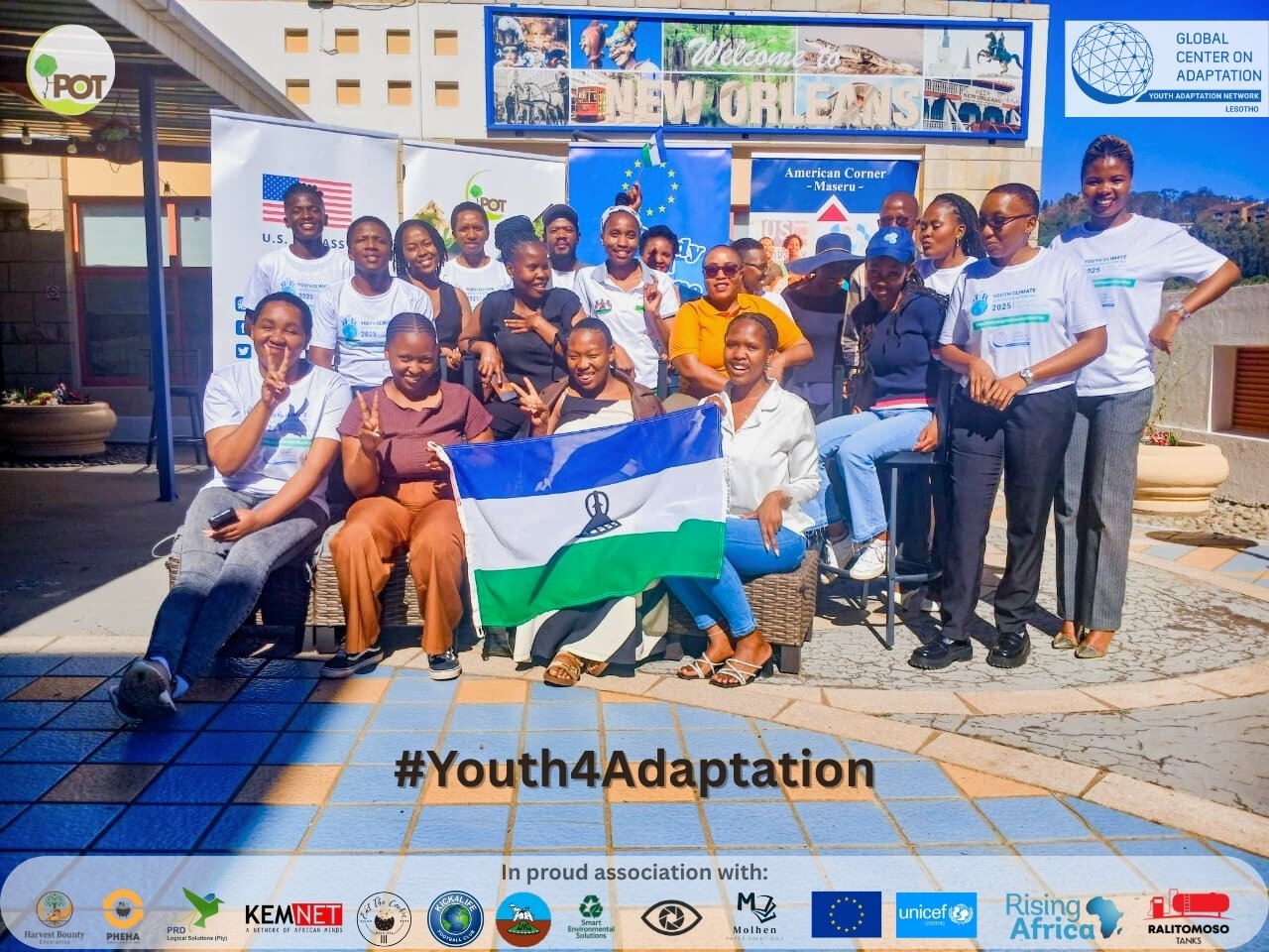 On the 15th of October 2025, the State Library’s American Corner in Maseru transformed into a hive of energy and determination as more than fifty youth-led organizations gathered for the Youth Climate Adaptation Action Day. The event, led by Plant One Tree in collaboration with the Global Center on Adaptation (GCA), European Union in Lesotho, Lesotho Meteorological Services, International Organization for Migration (IOM), Ministry of Forestry and Environment, Kick4Life, National Climate Change Committee.